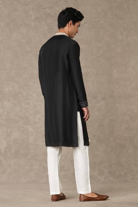 Black kurta featuring placed gota embroidery and tassel embellishments