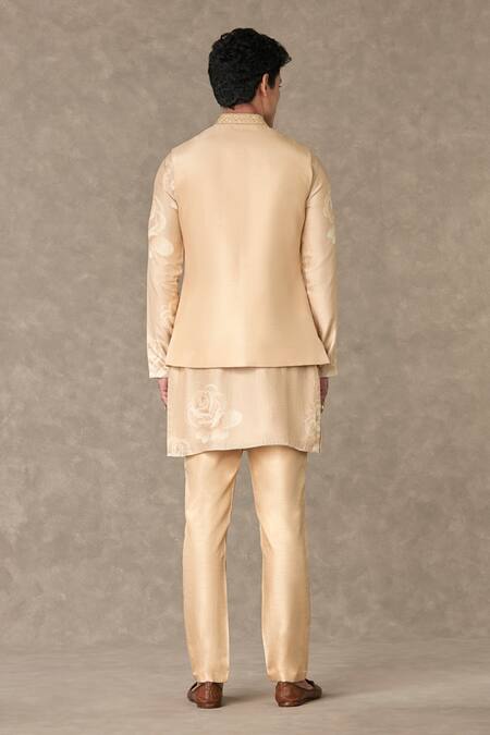Beige Silk Sequins, Diamonds Trikone Embroidered Bundi