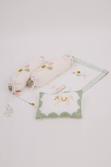 Peach cot sheet with I am going to the circus hand block print. Comes with a rectangle shaped pillow cover & 2 bolster cover.