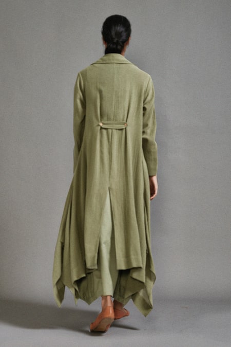Green Cotton Pocketed Asymmetric Jacket