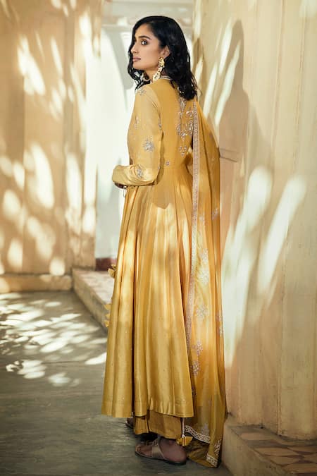 Yellow Chanderi Silk Mandarin Collar Angrakha Set
