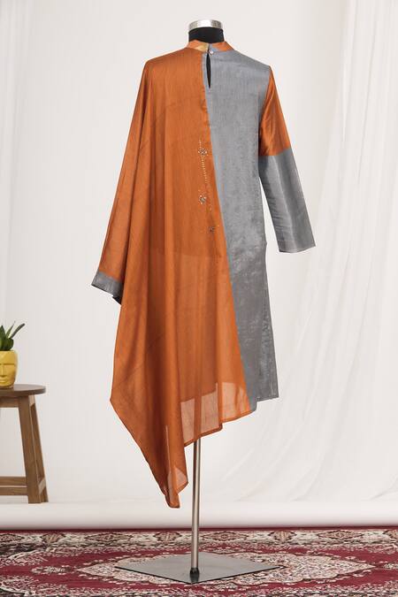Orange asymmetric tunic with contrast & draped sleeve detail.