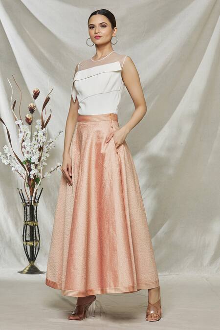 Pink skirt with embroidered detail & flared silhouette.