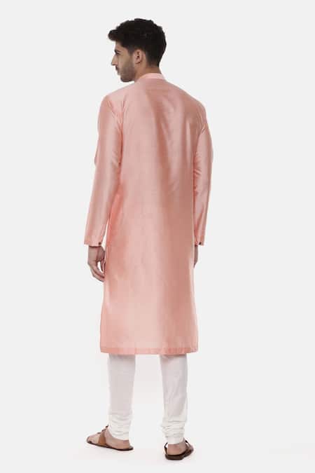 Buy_Mayank Modi - Men_Pink Silk Cotton Colorblock Kurta Set _Online_at_Aza_Fashions