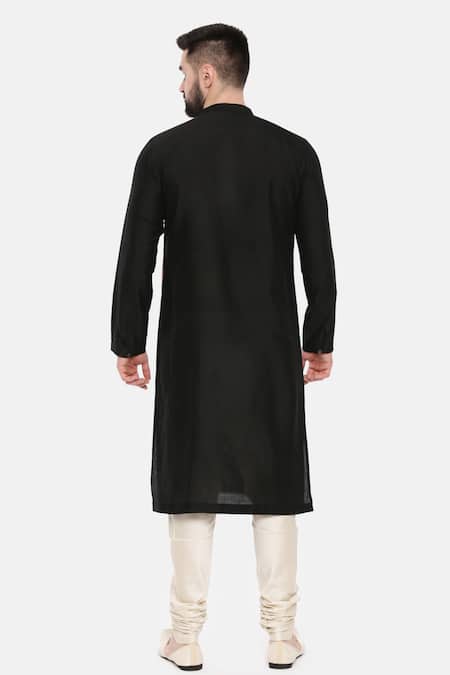 Black kurta featuring full sleeves and a round collar with an asymmetric broad floral print panel. Paired with a contrast churidar for a complete look.