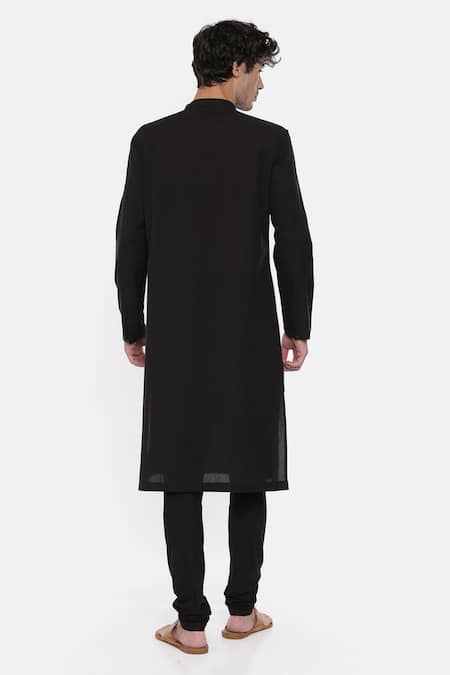 Black & grey overlap-style long kurta with asymmetric overlays & placement checkered detail. Comes with churidar.