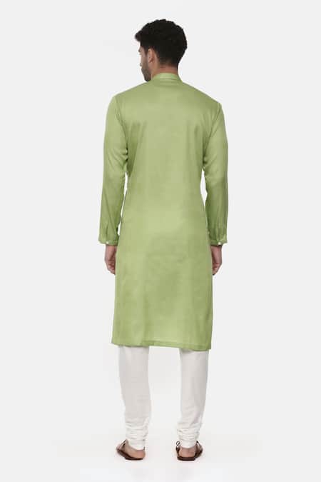 Buy_Mayank Modi - Men_Green Linen Silk Floral Kurta Set_Online_at_Aza_Fashions