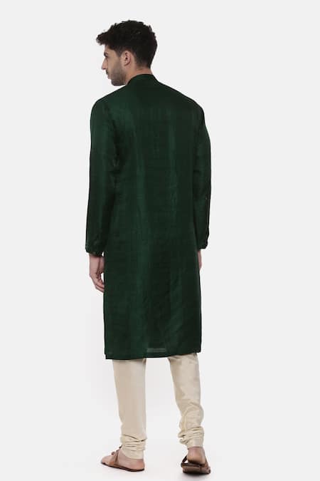 Buy_Mayank Modi - Men_Green Silk Slub Mukaish Work Kurta Set _at_Aza_Fashions