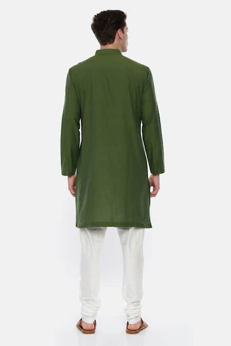 Green overlap kurta with asymmetric button placket. Paired with churidar.