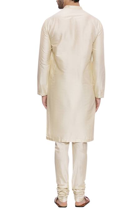 Beige Silk Pintuck Kurta With Churidar