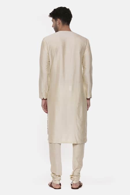 Beige overlap kurta with geometric printed panel & full sleeves. Comes with churidar.