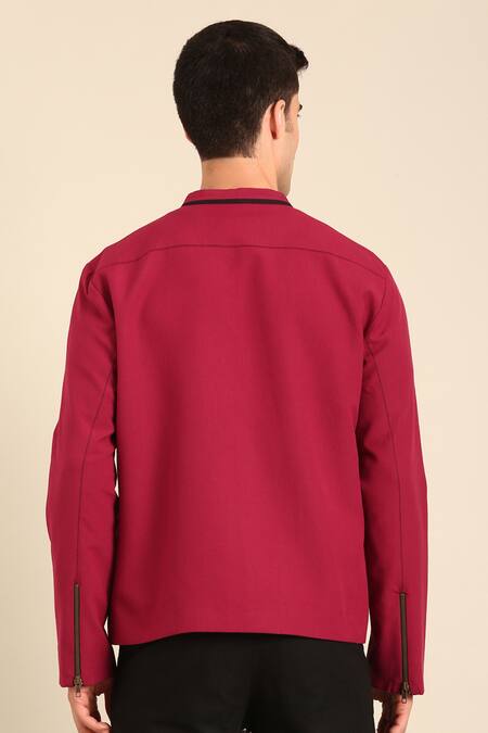 Wine bomber jacket made from malai cotton featuring a front zip closure and side pockets