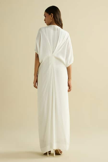 White Crepe Embroidery V-neck Designer Kaftan