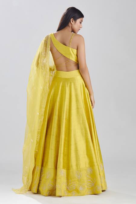 Yellow Raw , Organza Sequin And Cut Shazneen Fiha Embroidered Lehenga Set