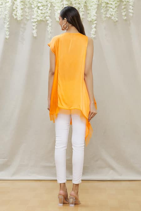 Orange Crepe Plain Asymmetric Draped Tunic