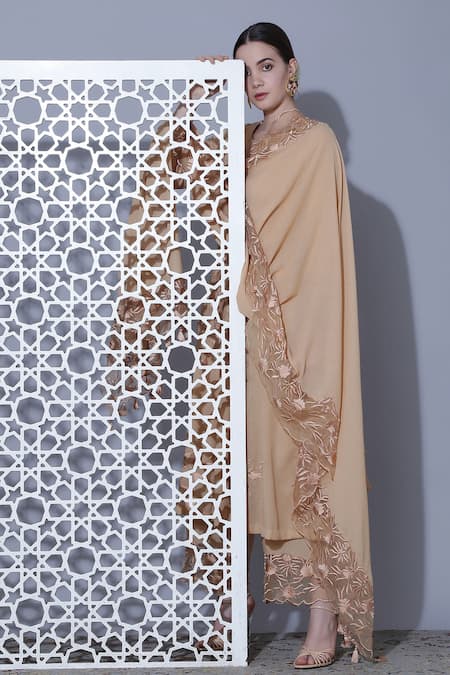 Buy_Mehak Talreja Couturre_Peach Cotton Voile Thread Work Round Floral Embroidered Anarkali Set _at_Aza_Fashions