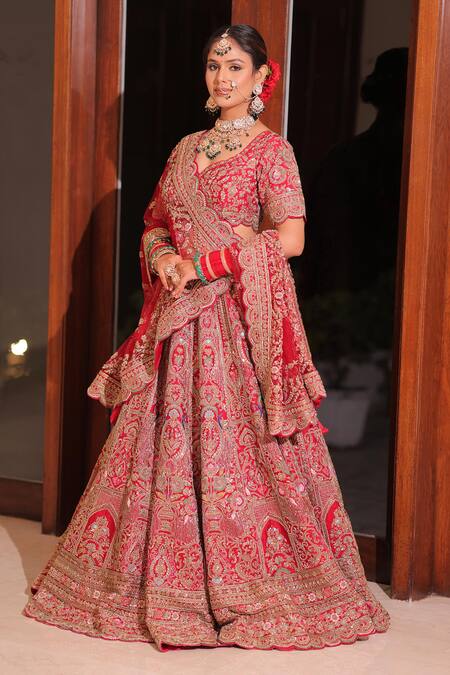 Buy_Mehar_Red Silk Embroidery, Zari Jaal And Kasab Bridal Lehenga Set _at_Aza_Fashions