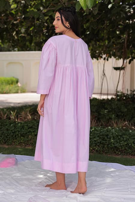 Pink Cotton Sequins, Cut Work Round Circular Web Embroidered Gathered Dress