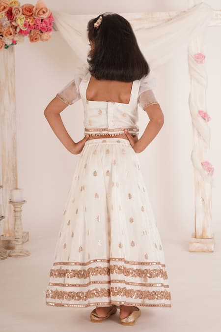 Buy_Mei & ZU_White Brocade, Cotton Cut Work, Pearls Leaf Pattern Lehenga Set_at_Aza_Fashions