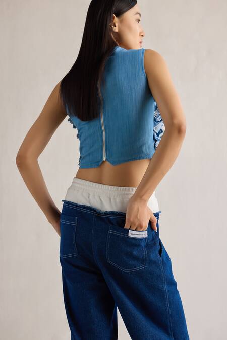 Blue designer top featuring 3D laser cuts in the front