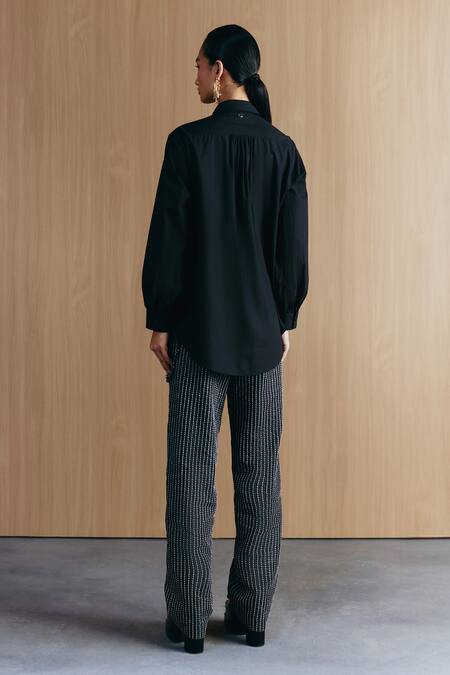 Embellishments along the shoulders and chest area., Button-down front for easy wear.