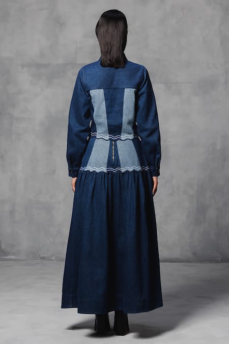 Blue Cotton Colo Blocked Maxi Skirt