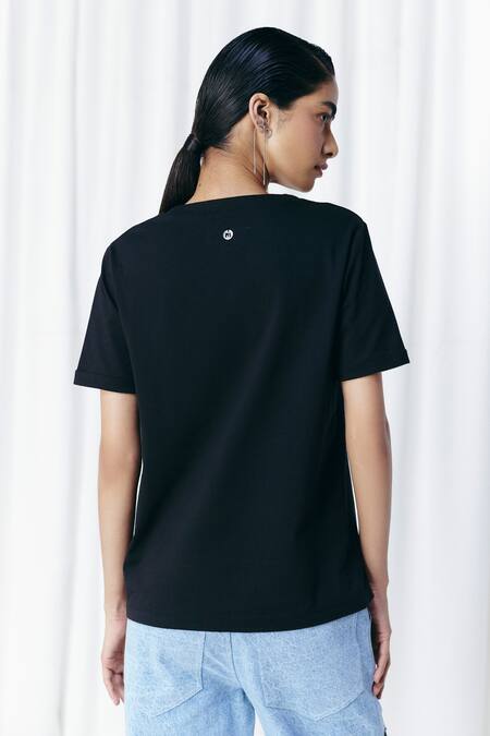 Black Cotton Beads V-neck Jellyfish Embellished T-shirt