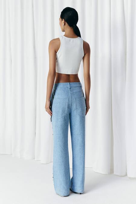 Only the white studded rib top is being sold., The pants worn by the model are not for sale.
