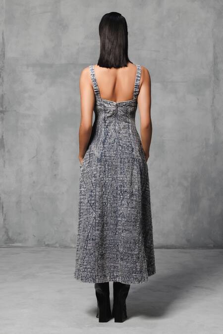 Grey Cotton Sweetheart Neck Overdyed Distressed Dress