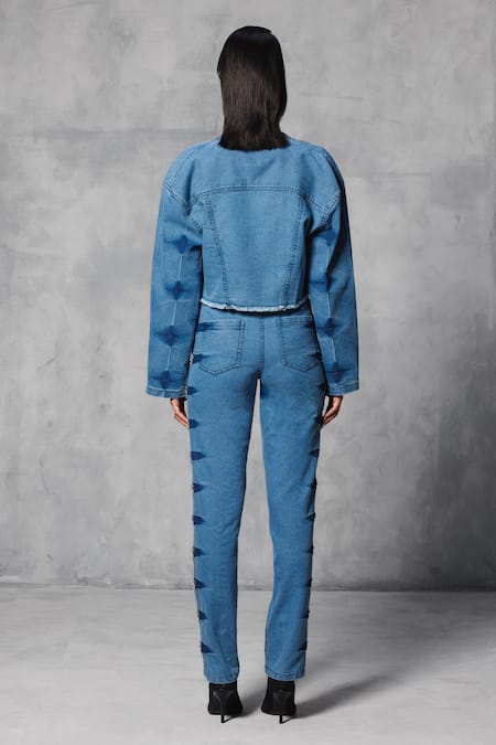 Blue Cotton, Lycra Sequins Panel Embellished Pant