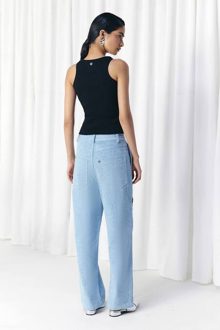 Blue Cotton Sequins Washed Denim Embellished Jeans