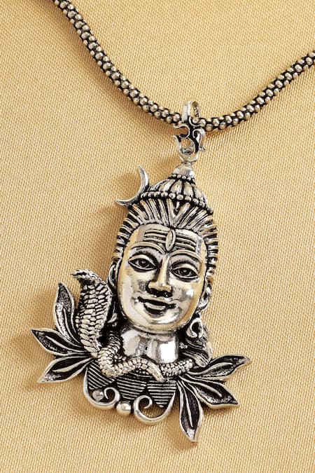 3D carved detailing of Shiva's face, Intricate leaf design around the pendant, Lobster clasp for secure closure
