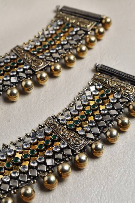 Cubic zirconia and onyx stone embellishments, Ghungroo bead drops for added charm, Handmade with intricate detailing