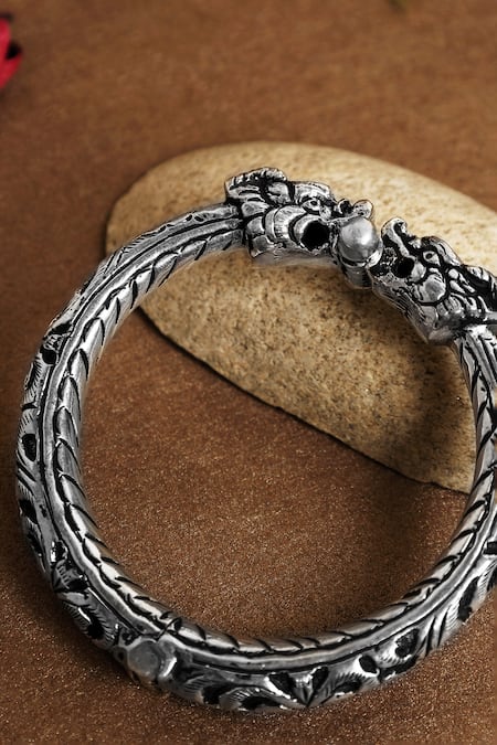 Intricate tribal dragon carving on the bangle, Closed design with a decorative clasp