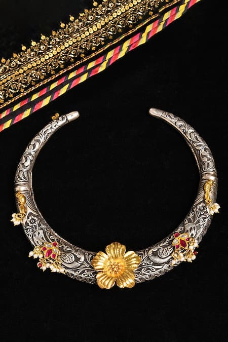 Only the dual tone carved hasli necklace is being sold.