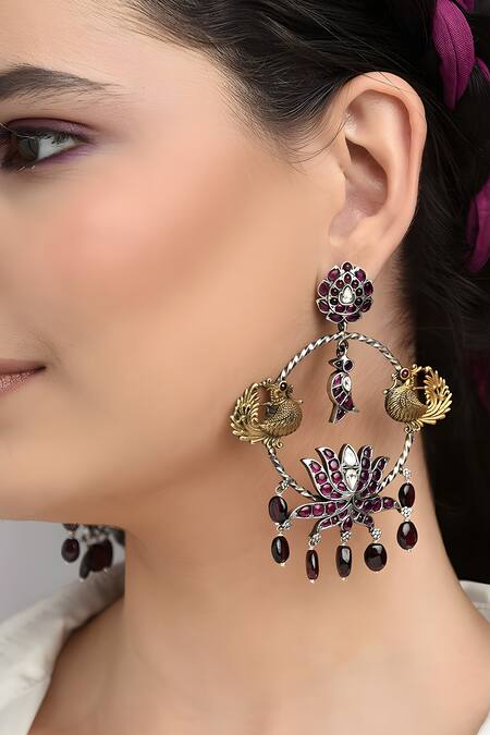 Intricate bird motifs, Handmade craftsmanship, Kundan stone detailing