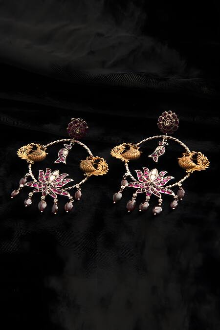 Buy_Mero Jewellery_Pink Stones Kundan Handcrafted Big Temple Earrings_at_Aza_Fashions