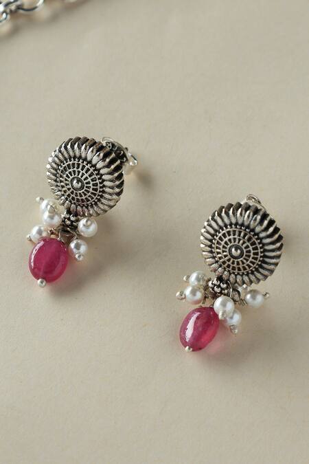 Multi Color Pearls Multicolor Silver Navratna Necklace Set