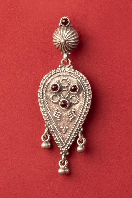 Silver Plated Stones Teardrop Kemp Embellished Earrings