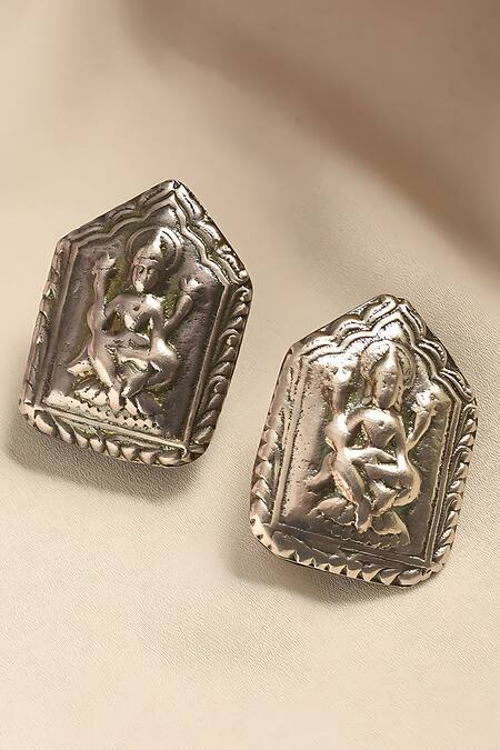 Silver Plated Embroidery Temple Embossed Stud Earrings