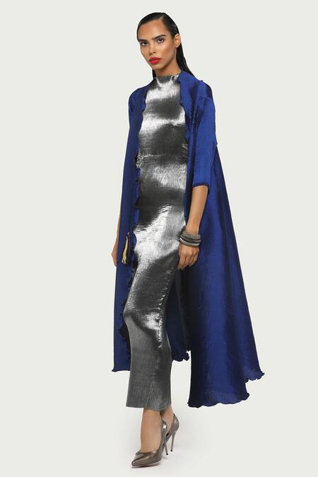 Buy_Kiran Uttam Ghosh_Grey Metallic Bodycon Dress With Pleated Jacket_at_Aza_Fashions