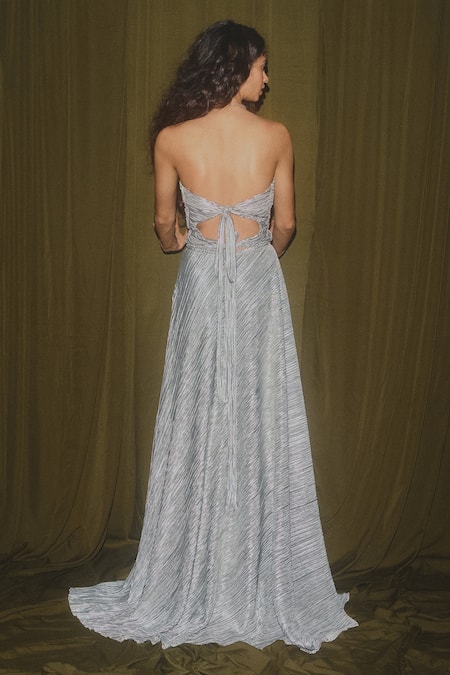 Silver Metallic Sweetheart Neck Front Cut-out Gown