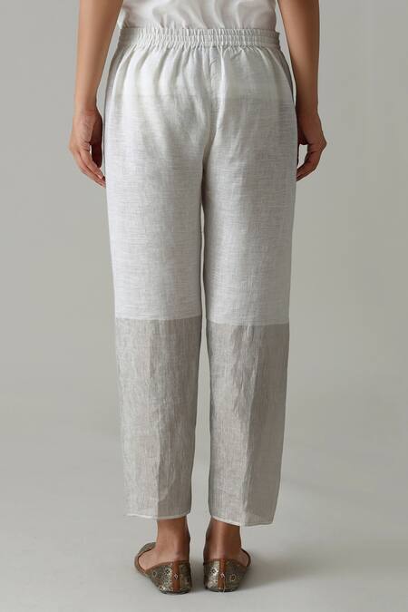 Buy_Manan_White Metallic Linen Pants_Online_at_Aza_Fashions