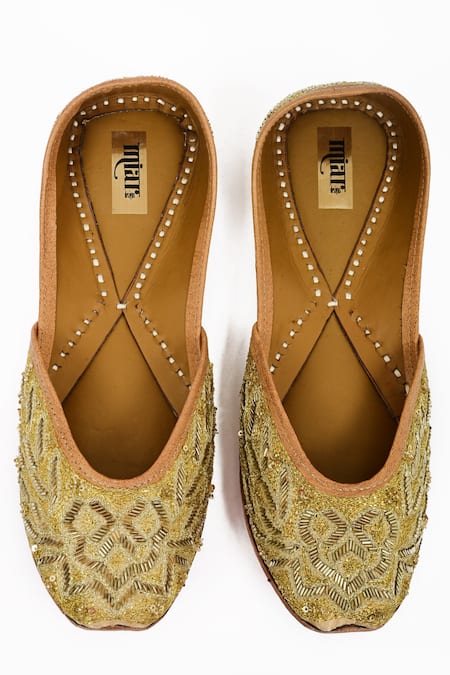 Gold Cutdana And Zari Embroidered Diti Juttis