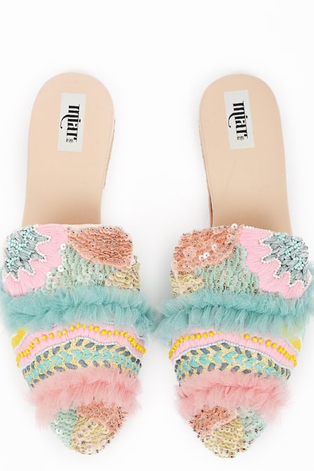 Blue Thread And Sequins Zunaira Frill Embellished Mules
