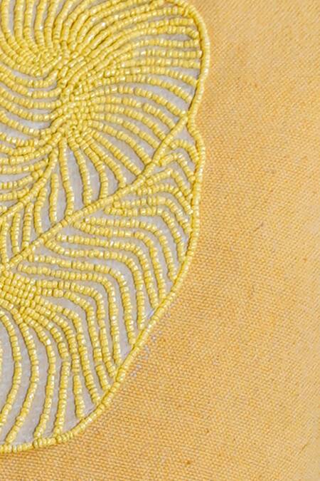 Sand yellow cotton cushion cover with abstract hand embroidery.