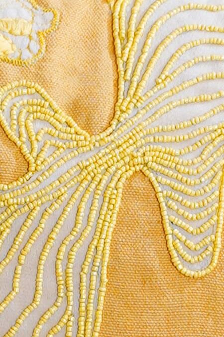 Sand yellow cotton cushion cover with abstract hand embroidery.