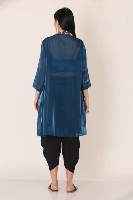 Blue Shimmer Organza Embroidered Thread Georgette Cape With Bustier
