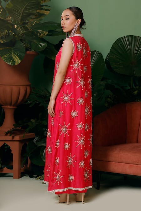 Buy_Midushi Bajoria_Pink Organza, Crepe Pearls, Cut Work, Stones Embroidered Jacket And Draped Skirt _at_Aza_Fashions