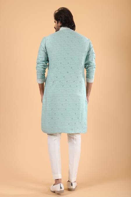 Buy_Millionaire_Mint Embroidery Floral Pattern Kurta Set _at_Aza_Fashions